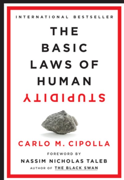 A serious economist, Cipolla, argues that “stupidity is the most destructive force in society: it’s universal, irrational, and costly to everyone—yet often underestimated”.